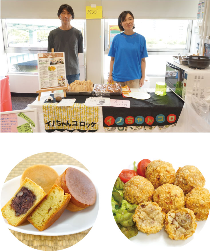 回転焼、イノちゃんコロッケ揚げ