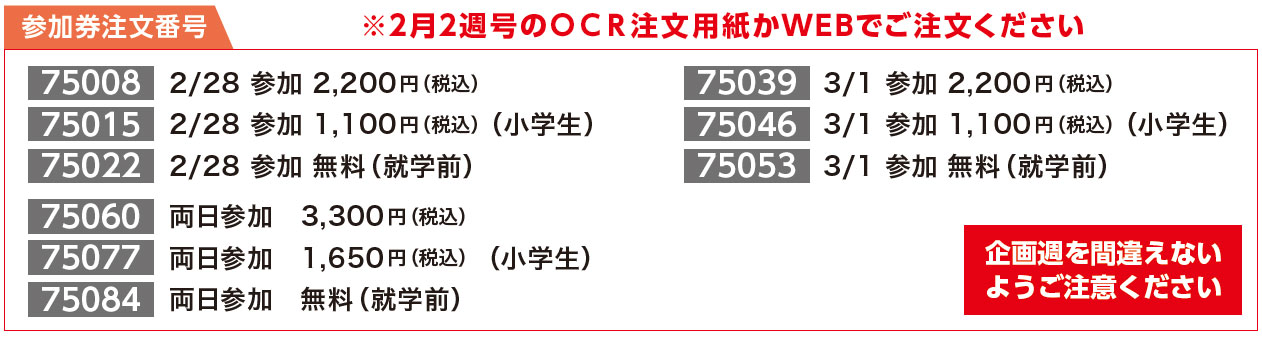 ●参加費:2,200円(税込)/小学生1,100 円(税込)※就学前のお子さんは無料