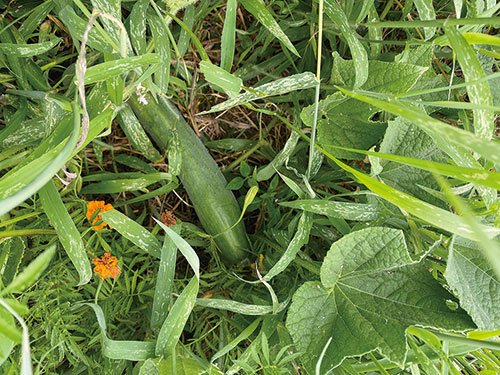 草の中で育つ地這いきゅうり